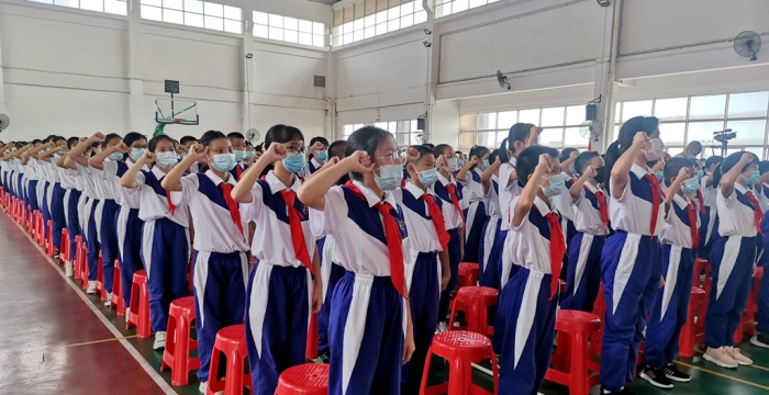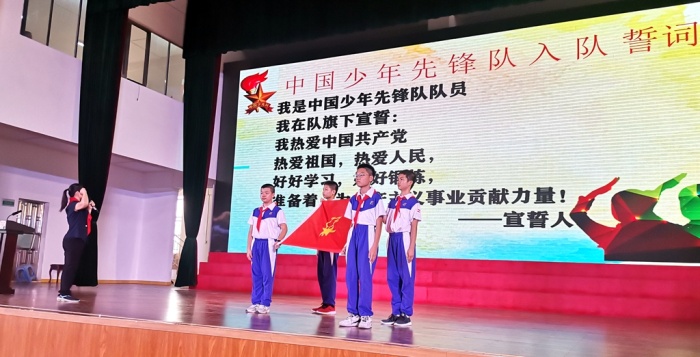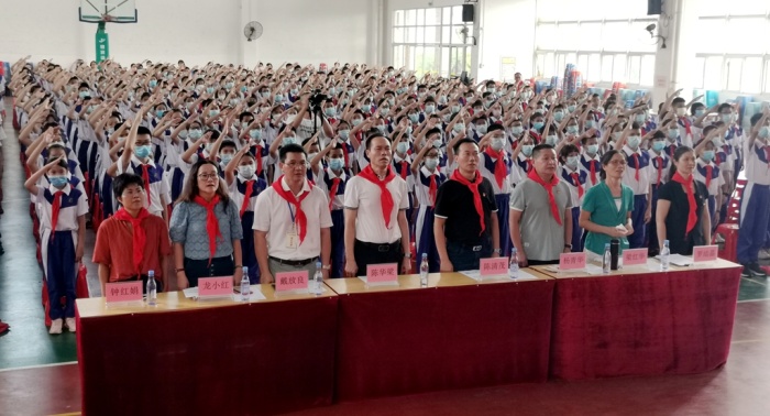 接著,由羅結(jié)晶副主任帶領(lǐng)初一年級(jí)全體學(xué)生重溫入隊(duì)誓詞:“我是中國少年先鋒隊(duì)隊(duì)員,我在隊(duì)旗下宣誓:我熱愛中國共產(chǎn)黨……”。嘹亮的誓詞,堅(jiān)定的決心,再次深深植入孩子們的心靈。