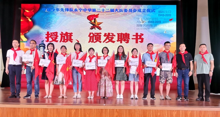 9月8日下午,為進(jìn)一步加強(qiáng)對(duì)學(xué)校少先隊(duì)工作的領(lǐng)導(dǎo),永寧中學(xué)團(tuán)委按照“黨建帶團(tuán)建,團(tuán)建帶隊(duì)建”的工作思路,培養(yǎng)少先隊(duì)員的主人翁意識(shí),在學(xué)校體育館隆重舉行了中國少年先鋒隊(duì)永寧中學(xué)第二十二屆大隊(duì)委員會(huì)成立暨新生、志愿者宣誓儀式。參加儀式的有陳清茂校長、陳華梁副校長、楊青華副校長等校領(lǐng)導(dǎo)和初一年級(jí)全體師生。