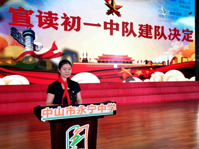 大會(huì)在雄壯的國歌聲中拉開帷幕。首先,由大隊(duì)輔導(dǎo)員羅結(jié)晶副主任宣布初一年級(jí)建隊(duì)決定和中隊(duì)輔導(dǎo)員名單,并由陳清茂校長、陳華梁副校長、楊青華副校長為中隊(duì)輔導(dǎo)員授中隊(duì)旗并頒發(fā)聘書。