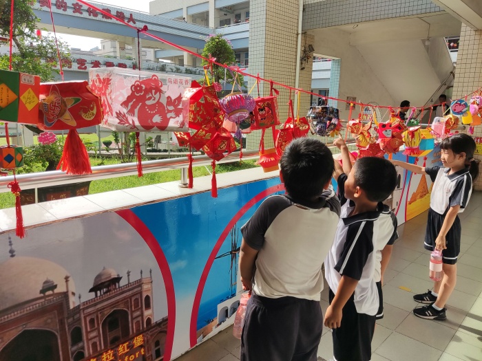 接著,三沙小學(xué)以年級為單位評選出近百個設(shè)計精巧、色彩繽紛、獨具匠心的燈籠作品。有的燈籠鮮艷熱忱,寄托濃濃的情思;有的燈籠古風(fēng)溫婉,承載中秋佳節(jié)的祝福;有的燈籠實用精巧,暗含“變廢為寶”的巧思。它們懸掛在校園之中,學(xué)生們下課后就聚集在燈籠下,興奮地跟小伙伴介紹自己的燈籠,十分歡樂。