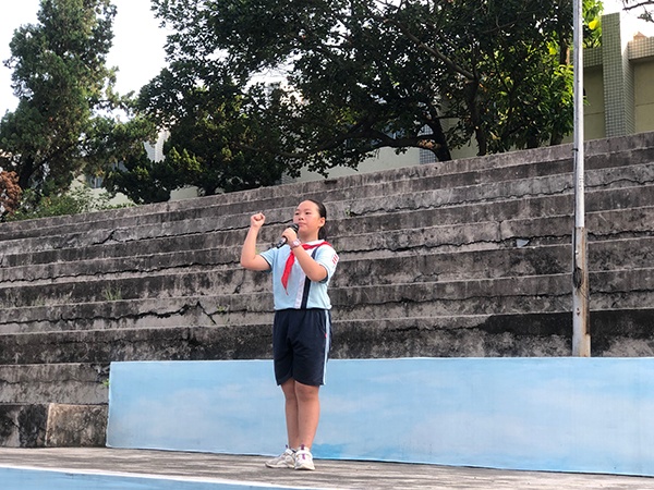 緊接著,同學(xué)們集中在國旗下,簡單而隆重的升旗儀式后,五(1)中隊熊一妍隊員作為大隊代表發(fā)表了國旗下講話。她與同學(xué)們重溫了九一八歷史事件,希望同學(xué)們勿忘國恥,從歷史中汲取教訓(xùn),努力學(xué)習(xí),長大后建設(shè)祖國。接著,大隊輔導(dǎo)員伍煜獻老師進行了活動總結(jié),表揚了同學(xué)們的整體表現(xiàn),強調(diào)了要在保證安全的前提下,進一步提高安全逃生的速度。