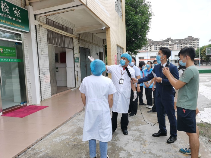 為進(jìn)一步規(guī)范食堂管理,認(rèn)真做好學(xué)校食堂食品安全監(jiān)管工作,切實(shí)守護(hù)全體師生“舌尖上的安全”,9月23日下午,2021年橫欄鎮(zhèn)第四期“全民投票查餐廳”活動(dòng),經(jīng)過前期的網(wǎng)民投票推選,由橫欄鎮(zhèn)食品藥品監(jiān)督所工作人員,鎮(zhèn)人大代表以及熱心市民組成的檢查組走進(jìn)橫欄中學(xué),開展了直播活動(dòng)。學(xué)校主管后勤工作的張翔副校長(zhǎng)全程參與了此次活動(dòng)。