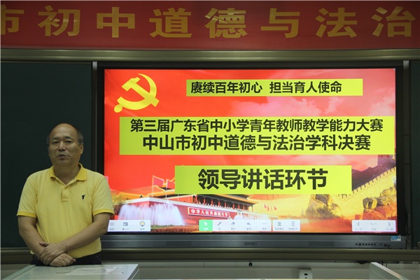 為推動(dòng)初中道德與法治課程教學(xué)改革,進(jìn)一步提高道德與法治教師業(yè)務(wù)水平,加強(qiáng)思政課教師隊(duì)伍建設(shè),第三屆廣東省中小學(xué)青年教師教學(xué)能力大賽中山市初中道德與法治學(xué)科決賽于2021年9月16日—17日在溪角中學(xué)如期舉行。中山市教育教學(xué)研究室何晉中主任、中山市教體局秘書科譚燕燕科長、中山市教育教學(xué)研究室夏建軍老師、沙溪鎮(zhèn)教體文旅局局長貝鵬程、沙溪鎮(zhèn)教育和體育事務(wù)中心寧云志主任蒞臨現(xiàn)場(chǎng)。