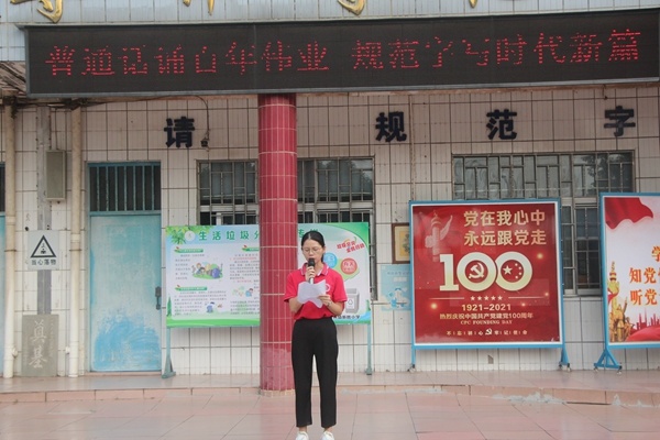 9月13日的升旗儀式上,語文科組長劉小輝老師進(jìn)行主題為“普通話誦百年偉業(yè),規(guī)范字寫時(shí)代新篇”的國旗下講話,劉老師向全校師生發(fā)起倡議,呼吁全體師生講普通話,寫規(guī)范字,做文明人,積極參與到推普周活動(dòng)中來,為構(gòu)建和諧語言生活,弘揚(yáng)中華優(yōu)秀文化而努力。