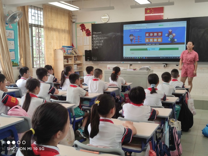 在課上,老師結(jié)合中山反詐騙網(wǎng)站的動(dòng)漫視頻以及警官分析的詐騙案例,為孩子們講解五花八門的電信詐騙,更講解了怎么預(yù)防,和被騙后怎么做。主題班隊(duì)活動(dòng)結(jié)束后,學(xué)生都知道自己被騙后最關(guān)鍵就是要抓緊“時(shí)間”,要抓緊時(shí)間凍結(jié)自己的相關(guān)號(hào)碼信息,而最有效的防范手段就是:心頭切莫有貪念,只要牢牢記住“天上不會(huì)掉餡餅”!就可以大大降低上當(dāng)受騙的幾率。