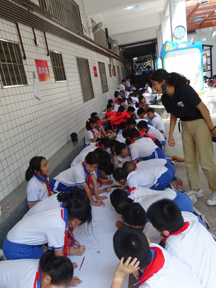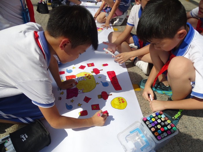 此次活動(dòng)以周瑞珍校長為總指揮,德育處、教導(dǎo)處做好前期部署,不同年級分別開展不同的活動(dòng)。一至三年級的學(xué)生變身小小藝術(shù)家,開動(dòng)腦筋,親手制作一張張精美的紙盤創(chuàng)意繪畫,紙盤上有各種各樣的圖案,如嫦娥、玉兔、月亮等等,構(gòu)圖有趣,顏色鮮艷,一筆一畫充滿著濃濃的中秋情。四五年級的學(xué)生進(jìn)行“百人畫長畫”活動(dòng),場面壯觀。學(xué)生想象豐富,以自己的視角,用小小的畫筆表達(dá)對中秋節(jié)深深的祝福!六年級的學(xué)生猜燈謎,校園內(nèi)的小操場、棋藝園內(nèi)懸掛著彩帶,100多條燈謎競相爭輝,謎面科學(xué)而通俗、生動(dòng)而活潑,有猜字的、有猜成語的、有猜人名的、有猜地名的……燈謎涉及的面廣而量大。學(xué)生認(rèn)真思考,熱烈討論,紛紛猜對燈謎,兌換一份心儀的獎(jiǎng)品。校園內(nèi)一片歡聲笑語,全校學(xué)生玩得不亦樂乎!