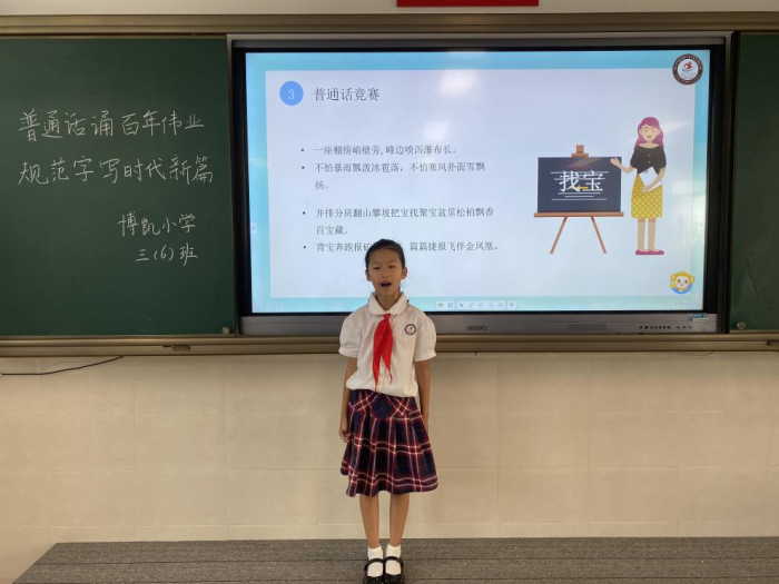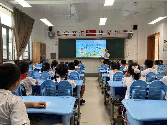 在德育處的組織下,各班精心開展了以“普通話誦百年偉業(yè),規(guī)范字寫時(shí)代新篇”為主題的班隊(duì)會(huì)活動(dòng),積極宣傳《中華人民共和國國家通用語言文字法》以及相應(yīng)的普通話基礎(chǔ)知識(shí)。