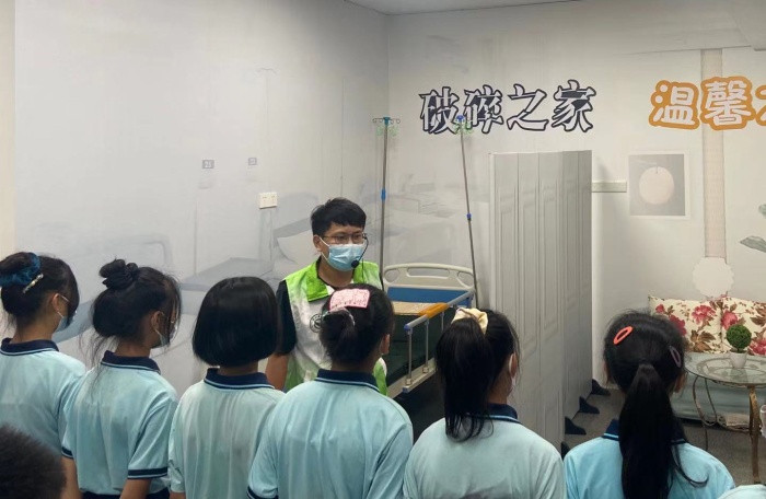 接著,同學(xué)們?cè)诮巨k梁社工的帶領(lǐng)下,來到模擬KTV、監(jiān)獄實(shí)地等感受吸毒帶來的巨大危害。隨后,全體同學(xué)進(jìn)行禁毒宣誓,堅(jiān)決牢記歷史使命,弘揚(yáng)硝煙精神,自覺抵制毒品誘惑。最后,全體學(xué)生觀看禁毒視頻,直觀、詳實(shí)的內(nèi)容介紹,讓孩子們更加直觀地了解毒品以及吸食毒品帶來的危害性。