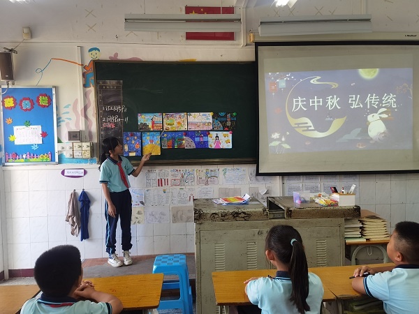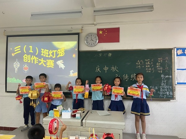9月18日,為了讓學(xué)生更深入了解中秋節(jié)文化,少先隊(duì)大隊(duì)輔導(dǎo)員朱文娟老師在國(guó)旗下深情地講述關(guān)于中秋節(jié)的來歷,與學(xué)生們一起吟詠文人墨客的經(jīng)典詩文,呼吁大家繼承祖國(guó)優(yōu)秀傳統(tǒng)文化和傳統(tǒng)節(jié)日,增強(qiáng)民族文化自信心。班會(huì)課上,班主任有條不紊地開展活動(dòng)。如一、二年級(jí)的小朋友,在爸爸媽媽的幫助下帶上月餅、水果等美食,與同學(xué)們開展中秋傳統(tǒng)美食交流會(huì)。三、四年級(jí)開展一次中秋創(chuàng)意燈籠展示會(huì)。會(huì)上,學(xué)生提著親手制作的燈籠得意地分享他們的制作樂趣。