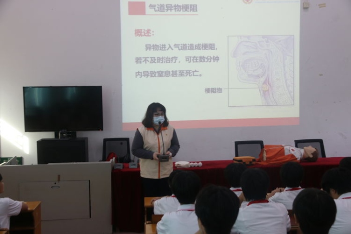為了有效地推進(jìn)應(yīng)急救護(hù)普及工作,切實(shí)增強(qiáng)學(xué)生災(zāi)害預(yù)防、逃生避險和自救互救能力,2021年9月22日下午4點(diǎn),一場意義非凡的急救培訓(xùn)活動在橫欄中學(xué)階梯教室舉行。本次活動由中山市紅十字會衛(wèi)生培訓(xùn)中心進(jìn)行指導(dǎo),由黎子丹、陳怡兩位老師負(fù)責(zé)授課,她們秉承著專注專業(yè)的精神,力求幫助全體參會的初一年級的師生有效地提高應(yīng)急救護(hù)技能。