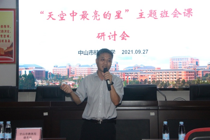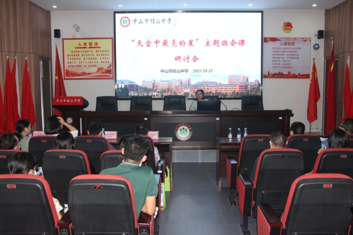 中學(xué)生該追什么樣的“星”?如何培養(yǎng)青年學(xué)生的愛國(guó)之情?這些問題一直是德育工作的焦點(diǎn)問題。9月27日下午,桂山中學(xué)響應(yīng)中山市教育和體育局的號(hào)召,研磨呈現(xiàn)了一節(jié)“天空中最亮的‘星’”的主題班會(huì)示范課。德育科郭勇科長(zhǎng)、桂山中學(xué)陳福生副校長(zhǎng)、東區(qū)中學(xué)高宏副校長(zhǎng)以及全市14所直屬學(xué)校德育線的領(lǐng)導(dǎo)和部分班主任觀摩了此次班會(huì)課,共同研討如何正確引導(dǎo)學(xué)生樹立正確的追星觀,讓正確的榜樣照亮學(xué)生的青春之路。