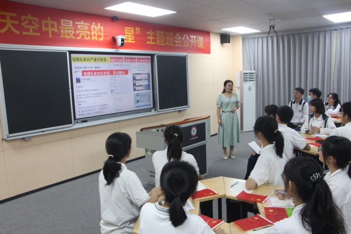學(xué)生區(qū)嘉欣說,林翠老師的課挺有意思的,讓我們真正明白應(yīng)該追什么樣的“明星”。學(xué)生蘇振豪說,通過上課,我們明白了國(guó)家整治“飯圈”文化的意義,也深刻了解了理想之“星”、祖國(guó)之“星”才是我們應(yīng)該一生追求的。林翠老師是中山市黨旗飄飄主題班會(huì)課一等獎(jiǎng)獲得者,為了上好這堂班會(huì)課,她在課前向?qū)W生們發(fā)放問卷調(diào)查,與學(xué)校研課團(tuán)隊(duì)仔細(xì)打磨,努力讓這節(jié)示范課在師生心中開花結(jié)果。