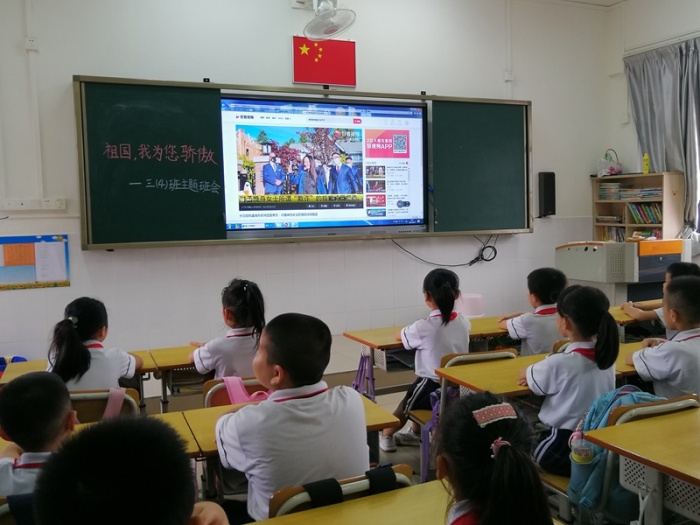 首先,各班班主任結合今年“建黨百年”“中華人民共和國成立72周年”“孟晚舟回國”等話題內容開展此次主題班會。課上,各班班主任根據學情特點,以形式多樣的教學形式引導學生融入本次主題班會課中。有的班級在班主任與“小歌唱家”的帶領下學習愛國歌曲,有的班級則通過觀看視頻的形式進一步了解祖國的發(fā)展與變化;有的班級則以“孟晚舟案件”為熱點話題展開討論,并引導學生理解孟晚舟的平安歸國背后代表著中國國力的日益強盛,代表著中國共產黨始終堅定守護人民,為人民服務的決心,代表著我們的祖國始終相信正義,堅定捍衛(wèi)中國人民的利益,捍衛(wèi)中國國家的尊嚴。