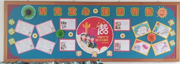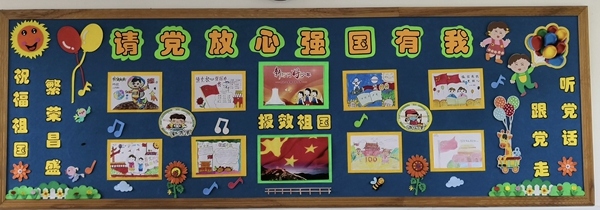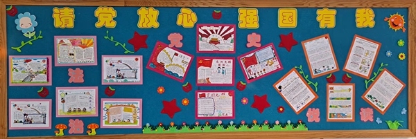 正所謂“少年強則中國強”,為了激起學生的愛國熱情,各班通過板報布置,以潤物細無聲的形式進行愛國主義教育。本次板報的主題為“請黨放心,強國有我”,各班學生在正副班主任的指導與帶領下,為班級布置了形式多樣、色彩鮮明、教育內容童氣滿滿的黑板報,展示了“黨史”“法治”“閱讀”等主題內容,有的班級還結合班級特色展示班級活動風采。板報區(qū)域雖小,卻布置規(guī)整,教育內容豐富。