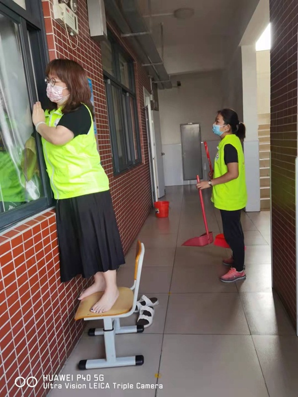 其次,為了以更加干凈整潔的面貌迎接國慶的到來,同時也響應建設文明中山的號召,各班在班主任和家委的積極帶領下,報名參加班級志愿服務活動。活動過程熱情似火,家長和學生們強強聯(lián)手,分工明確,將教室打掃得一干二凈。