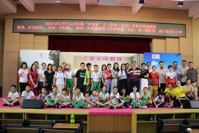 為更好地推進(jìn)家庭教育工作,引領(lǐng)廣大家庭“注重家庭、注重家教、注重家風(fēng)”,促進(jìn)家庭和睦、親子和諧,營(yíng)造有利于兒童健康成長(zhǎng)的家庭和社會(huì)環(huán)境,9月27日晚,由中山市民政局指導(dǎo),中山市婦女聯(lián)合會(huì)主辦,中山市家庭教育工作者協(xié)會(huì)承辦,港口鎮(zhèn)婦聯(lián)、港口鎮(zhèn)中心小學(xué)協(xié)辦的2021年中山市“和諧家”之《青春·拒毒》家教情景劇正在港口鎮(zhèn)中心小學(xué)大禮堂精彩上演。港口鎮(zhèn)婦聯(lián)陳麗華主席、港口鎮(zhèn)中心小學(xué)李小健校長(zhǎng)、梁文玲副校長(zhǎng)、丘茶芬副校長(zhǎng)、六年級(jí)全體班主任和200多名好學(xué)親子一起觀看了本場(chǎng)演出。