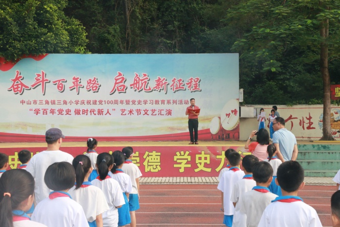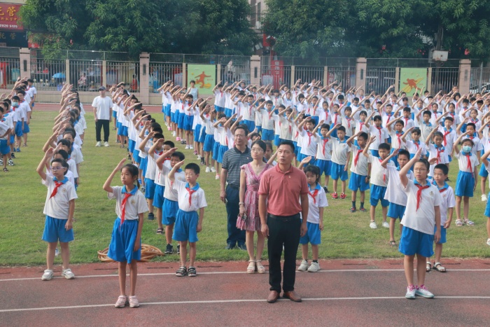 每年的9月30日是中國(guó)烈士紀(jì)念日,為向新中國(guó)獻(xiàn)身的英雄表達(dá)崇敬與懷念之情,培育學(xué)生愛黨愛國(guó)的熱情與信念,9月27日上午,中山市三角鎮(zhèn)三角小學(xué)在學(xué)校操場(chǎng)舉行了莊嚴(yán)的升旗儀式。升旗儀式后,陳見洪校長(zhǎng)為全校師生作了題為《沒有任何力量能夠阻擋中國(guó)前進(jìn)的步伐》的國(guó)旗下講話。