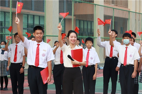國慶將至,清歌飛揚,歡欣鼓舞喜洋洋。9月30日清晨,中山市一中在學校豐山球場舉行“不負時代 強國有我”迎國慶主題升旗儀式?,F(xiàn)場近8000師生齊聚以鏗鏘誓言發(fā)出時代強音,以青春之聲為祖國獻禮,齊祝愿祖國繁榮昌盛。