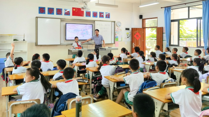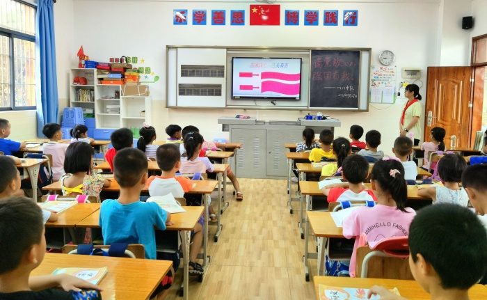 隊(duì)會(huì)課上,各中隊(duì)輔導(dǎo)員帶領(lǐng)隊(duì)員重溫“請(qǐng)黨放心 強(qiáng)國(guó)有我”的獻(xiàn)詞,借此契機(jī),利用“學(xué)習(xí)強(qiáng)國(guó)”平臺(tái)上資源,播放典型黨員楷模的故事,引導(dǎo)學(xué)生學(xué)習(xí)黨發(fā)展、斗爭(zhēng)、壯大過(guò)程中的光輝歷史和革命英雄事跡,學(xué)習(xí)他們無(wú)私奉獻(xiàn)的精神。結(jié)合即將到來(lái)的國(guó)慶節(jié),中隊(duì)輔導(dǎo)員也帶領(lǐng)隊(duì)員逐一了解國(guó)名的由來(lái)、建國(guó)時(shí)間、國(guó)旗、國(guó)徽含義等有關(guān)知識(shí),認(rèn)識(shí)到祖國(guó)的風(fēng)雨兼程,才有今天的繁榮昌盛,讓隊(duì)員們明白了作為新時(shí)代的少先隊(duì)員,要牢記使命,努力學(xué)習(xí),用實(shí)際行動(dòng)為紅領(lǐng)巾增光添彩。經(jīng)過(guò)本節(jié)隊(duì)課,隊(duì)員們更將“請(qǐng)黨放心,強(qiáng)國(guó)有我”這一誓言內(nèi)化于心,外化于行。