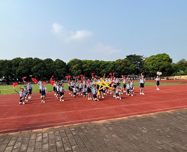 上午8點,莊嚴的國歌響起,同學們已齊聚在運動場上參加升旗儀式。鮮艷的五星紅旗下,運動員代表周駿楠同學代表全體運動員宣誓,表達了賽出水平、賽出風格、比賽第二、友誼第一的堅定決心。接下來,辜鴻雁校長在開幕致辭中,談到了孟晚舟女士近日在我國政府的努力下順利歸國,談到了9月30日為中國烈士紀念日。結合時政與歷史,辜校長為同學們揭示了深刻的人生道理:現(xiàn)在是和平建設年代,雖然沒有槍林彈雨,但仍然面臨生與死、血與火的考驗,如今的歲月靜好,祖國強盛,是英雄拿自己的生命換來的。辜校長寄語同學們,不僅要在學業(yè)上勇于爭先,而且要在德智體美等更廣泛的領域內實現(xiàn)新的突破,尤其是體育運動上,要用實際行動去追求更高、更快、更強,將紅色基因一代代傳承下去,以自己的理想信念和正確的價值觀,堅定不移聽黨話,矢志不渝跟黨走,提高綜合能力,做一名勇于追夢、勤于圓夢的新時代奮斗者,以實際行動踐行“請黨放心,強國有我”的莊嚴承諾。