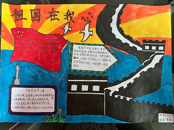祖國(guó)美麗而強(qiáng)大。濠涌小學(xué)的學(xué)生們,用自己的慧眼和心靈,學(xué)生通過(guò)圖畫(huà)的形式,精心描繪著美麗的五星紅旗,用心寫(xiě)下對(duì)祖國(guó)的祝福;通過(guò)手抄報(bào)的形式,繪制出祖國(guó)在他們心中的光輝形象,表達(dá)著他們對(duì)祖國(guó)的熱愛(ài)之情。