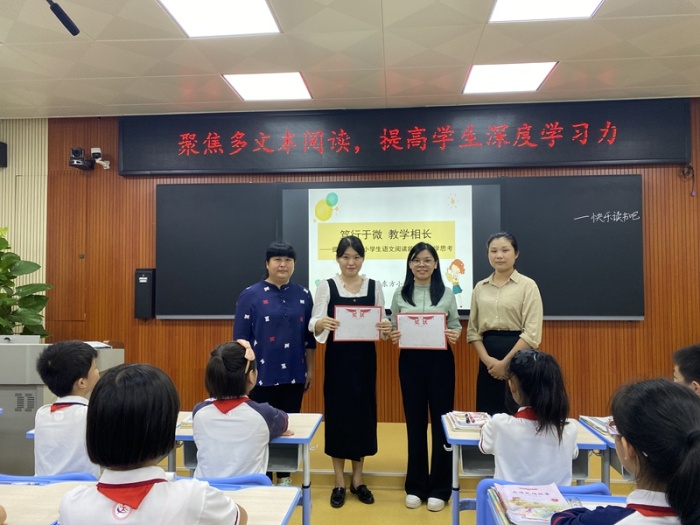 為了引領(lǐng)全鎮(zhèn)五年級(jí)語文教師,全面了解統(tǒng)編版五年級(jí)語文上冊(cè)教材的結(jié)構(gòu)特點(diǎn),聚焦多文本閱讀,提高多文本閱讀教學(xué)效率,提高學(xué)生深度學(xué)習(xí)力,2021年10月14日下午,小欖鎮(zhèn)東升片小學(xué)語文中心教研組在小欖鎮(zhèn)同樂小學(xué)舉行了統(tǒng)編版五年級(jí)語文上冊(cè)“聚焦多文本閱讀教學(xué),提高學(xué)生深度學(xué)習(xí)力”的教訓(xùn)一體化活動(dòng)。小欖鎮(zhèn)小語中心教研組副組長劉獨(dú)艷老師、東方小學(xué)劉霞老師和小欖鎮(zhèn)東升片區(qū)學(xué)校五六年級(jí)的語文老師們出席了本次活動(dòng)。