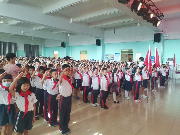 為慶祝中國(guó)少先隊(duì)建隊(duì)72周年、紀(jì)念“十一三”建隊(duì)日,10月11日,石岐區(qū)厚興鄭偉權(quán)學(xué)校少工委舉行“請(qǐng)黨放心 強(qiáng)國(guó)有我”主題隊(duì)會(huì)暨二年級(jí)第二批新隊(duì)員入隊(duì)儀式。