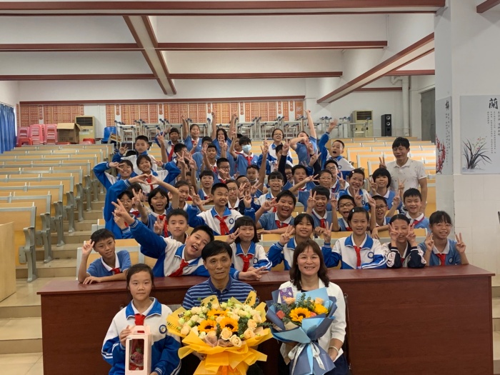 為弘揚(yáng)人民教師教書(shū)育人的高尚品格,進(jìn)一步提升教師的幸福感,營(yíng)造濃厚的尊師氛圍,激發(fā)學(xué)生熱愛(ài)老師濃厚感情,2021年10月14日上午,四沙小學(xué)舉行了主題為“春風(fēng)化雨四十載 桃李芬芳香滿(mǎn)園”的羅松根老師光榮退休師德主題活動(dòng)。四6班、六7班全體師生和全體行政在主會(huì)場(chǎng)階梯室參加,其他年級(jí)師生在課室通過(guò)釘釘直播收看。