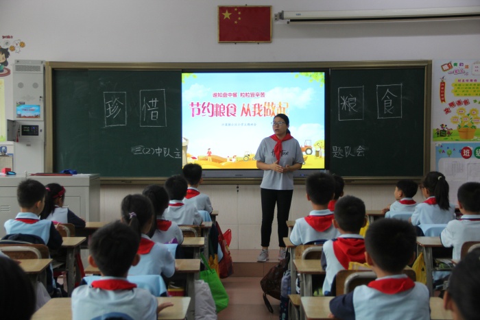 在各班主題隊會上,老師展示了貧困地區(qū)糧食稀缺的現(xiàn)狀以及社會上一些人浪費糧食的現(xiàn)象,兩種對比,讓隊員們從內(nèi)心體會到糧食的來之不易以及“誰知盤中餐,粒粒皆辛苦”的深刻內(nèi)涵,并自覺承諾從現(xiàn)在做起,從自身做起,節(jié)約每一粒糧食,抵制和反對浪費糧食的行為,養(yǎng)成愛糧節(jié)糧的好習慣。