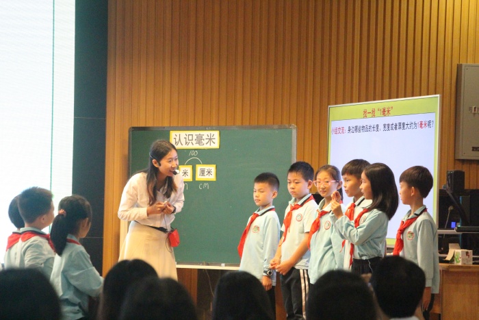 此次教研活動(dòng)內(nèi)容為三年級(jí)上冊(cè)《毫米的認(rèn)識(shí)》,研討活動(dòng)在兩節(jié)精彩的同課異構(gòu)課中拉開(kāi)了序幕。馮利英和宋文燕兩位老師活動(dòng)化的教學(xué)設(shè)計(jì)、孩子們積極主動(dòng)地參與、自信大方的展示,深深地吸引了聽(tīng)課的老師們,給大家?guī)?lái)了啟發(fā)和思考。