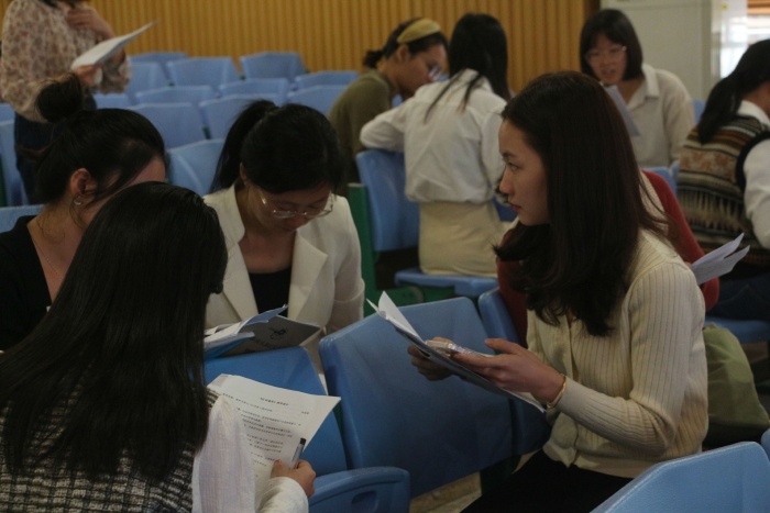 兩節(jié)課后,工作坊的成員們先分小組進(jìn)行評(píng)課交流,接著,小組派代表發(fā)言。通過(guò)課例觀摩與評(píng)課交流,學(xué)員們?cè)趯I(yè)知識(shí)上相互學(xué)習(xí),取長(zhǎng)補(bǔ)短,呈現(xiàn)了一場(chǎng)思維碰撞的盛宴。