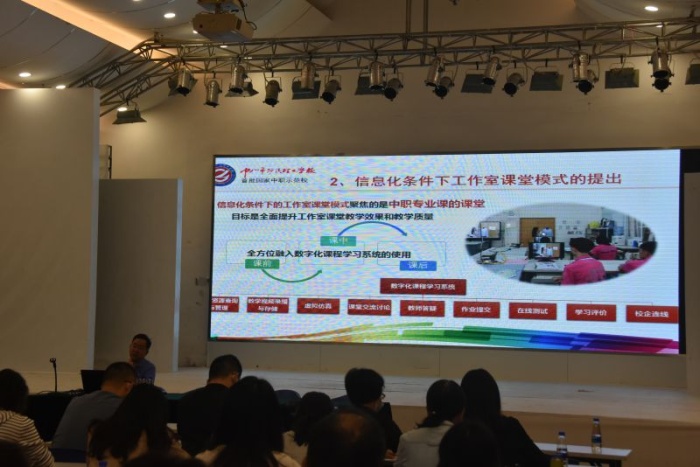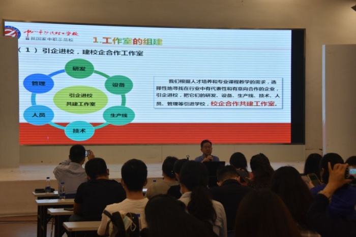 交流會(huì)上,馮子川以“中職工作室課堂模式的教學(xué)改革與實(shí)踐”“信息化條件下的工作室課堂模式”等主題作講座,重點(diǎn)介紹學(xué)校引企進(jìn)校,建設(shè)校企合作、產(chǎn)教融合工作室,實(shí)行項(xiàng)目教學(xué)、生產(chǎn)性實(shí)訓(xùn)、跟崗和定崗實(shí)習(xí),讓學(xué)生在真實(shí)的企業(yè)環(huán)境里學(xué)習(xí)、實(shí)訓(xùn),使得一大批專業(yè)教師在工作室迅速成長,成為“既是學(xué)校教師,又是企業(yè)技師”的真正雙師型教師,取得了豐富的產(chǎn)學(xué)研成果。近年來,學(xué)校借助信息化手段,在課前、課中、課后等教學(xué)環(huán)節(jié)中利用數(shù)字化課程學(xué)習(xí)系統(tǒng),通過在線學(xué)習(xí)、在線交流和遠(yuǎn)程評(píng)價(jià)等方式,幫助學(xué)生逐步達(dá)到技能形成、能力培養(yǎng)、知識(shí)創(chuàng)新的學(xué)習(xí)階段。