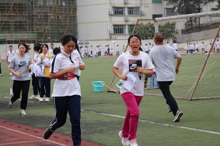 為確保測試安全,測試中教師各負(fù)其責(zé),班主任、黨員志愿者教師、醫(yī)務(wù)人員全力配合,保證每個測試環(huán)節(jié)不出任何問題,做好學(xué)生運(yùn)動過程中發(fā)生的安全保障工作?!凹佑?!”“不要緊!”“堅(jiān)持!”他們一邊做好本職工作,一邊不時給予一聲聲關(guān)懷和鼓勵,讓同學(xué)們?nèi)玢宕猴L(fēng),他們更加意氣風(fēng)發(fā),斗志昂揚(yáng)!學(xué)校王曙東副校長、梁紅妹副校長、林國勝副校長及中層行政前來為體測的同學(xué)們加油助威。!他們齊聲吶喊,高聲助威,為參加體測的學(xué)子加油鼓勁兒。一聲聲“加油!”“沖刺!”回蕩在校園里,回蕩在學(xué)子們的心里。