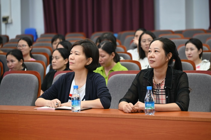 鐘委員充分肯定了林校長講座的實效性,并就“以愛育人”發(fā)表了自己的看法,她結合實際生活經(jīng)驗,向在座老師提出兩點感受:一是心地以外,別無功夫;二是愛需要技術,師愛并非溺愛。鐘委員爽直利落的一席話,讓在座的老師受益匪淺。