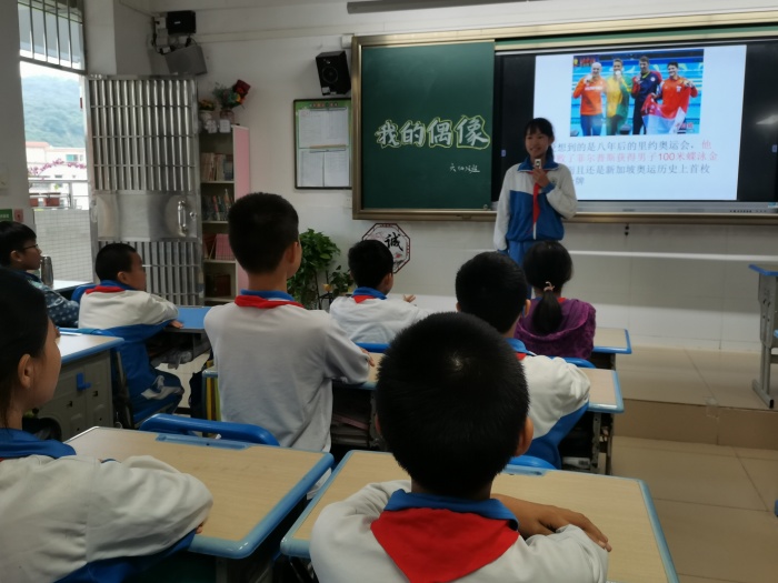 10月29日下午,各班級開展“我心中的偶像”主題班會課。課堂上,教師引導(dǎo)孩子們理解偶像的定義——偶像,是心中崇拜的人,他如明燈,指引人生的方向。緊接著,教師讓孩子們暢談自己心中的偶像,在交流分享中,引導(dǎo)孩子們不能只關(guān)注偶像的外表,更重要的是學(xué)習(xí)偶像身上優(yōu)秀的品質(zhì)。隨后,教師帶領(lǐng)孩子們一起找尋新時代的偶像,如袁隆平、鐘南山等為國家做出巨大奉獻(xiàn)的國之脊梁;全紅嬋、蘇炳添等在賽場上奮勇拼搏的奧運健兒……還讓孩子們觀看蘇炳添比賽的視頻,向大家介紹中山短跑名將蘇炳添的事跡,讓同學(xué)們明白偶像綻放光芒的背后,同樣需要付出大量的汗水和心血;觀看“神舟十三號”發(fā)射成功現(xiàn)場視頻,讓孩子們萌發(fā)對航天事業(yè)的向往,引導(dǎo)大家要鍥而不舍的學(xué)習(xí),勤奮自律,努力提升自我。通過主題班會課,孩子們發(fā)現(xiàn),原來偶像不僅僅是出現(xiàn)在熒幕上的影視歌星,還有很多在崗位上兢兢業(yè)業(yè)的勞動者,甚至是身邊默默無聞的普通人,只要他們有積極向上的正能量,也可以成為我們的偶像。