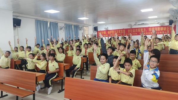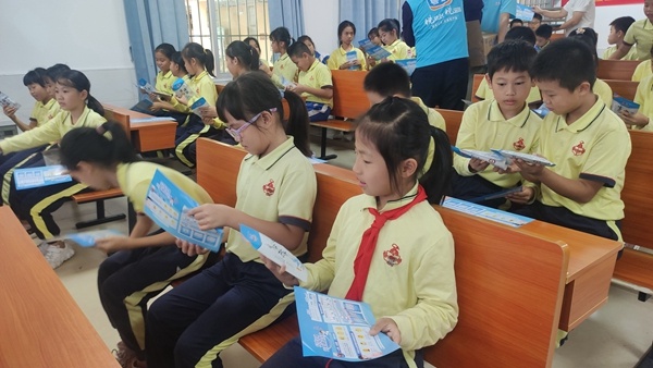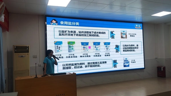 接著,由廣東省鹽業(yè)集團(tuán)中山有限公司的老師介紹如何“安全用鹽 健康生活”,在講授的過程中讓學(xué)生了解到食鹽的分類,如何區(qū)分真假鹽,如何科學(xué)用鹽。在真假鹽辨別的環(huán)節(jié)中,在場的老師通過活動的形式教會了學(xué)生可以通過看包裝兩側(cè)折痕、查看鐳射防偽標(biāo)識等方法進(jìn)行區(qū)分,在現(xiàn)場中還邀請同學(xué)一起做起了科學(xué)小實(shí)驗(yàn),學(xué)生們反應(yīng)熱烈,參與度極高。講座結(jié)束后,為了加深學(xué)生的理解,現(xiàn)場給每一位學(xué)生派發(fā)了宣傳單和一包小禮物“海鹽”,讓學(xué)生回去一同與家長們分享今天的活動。