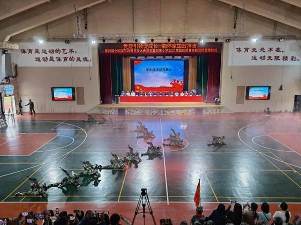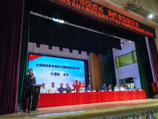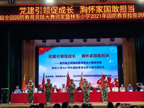為進(jìn)一步貫徹落實《中華人民共和國國防教育法》和國防特色學(xué)校相關(guān)要求,培養(yǎng)學(xué)生的國防意識,提高國防素質(zhì),深入推進(jìn)學(xué)校國防特色建設(shè),10月22日,坦洲鎮(zhèn)林東小學(xué)在體育館舉行了第四屆全國國防教育競技大賽頒獎暨林東小學(xué)2021年國防教育技能訓(xùn)練交接儀式。中華網(wǎng)國防軍事發(fā)展中心總經(jīng)理、大賽組委會秘書長牛淏屹,中山市委宣傳部宣傳教育科科長康維華,中山市教育和體局體衛(wèi)藝科四級主任科員李藝,中山市中小學(xué)德育研究與指導(dǎo)中心副主任、石岐區(qū)教體文旅局德育專干潘志堅,坦洲鎮(zhèn)宣傳辦副主任、教體文旅局副局長張穎銘,坦洲鎮(zhèn)教體文旅局副局長楊興,鎮(zhèn)武裝部干事高華順,鎮(zhèn)團(tuán)委專干黃家燕,市全民國防教育講師團(tuán)成員梁華,鎮(zhèn)教體中心專干、兄弟學(xué)校校長以及林東小學(xué)五、六年級全體師生和各班家委會成員參加了此次活動。
