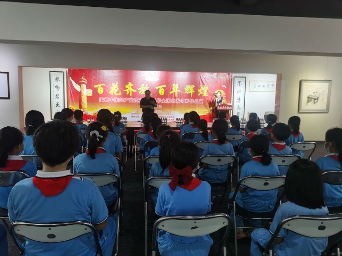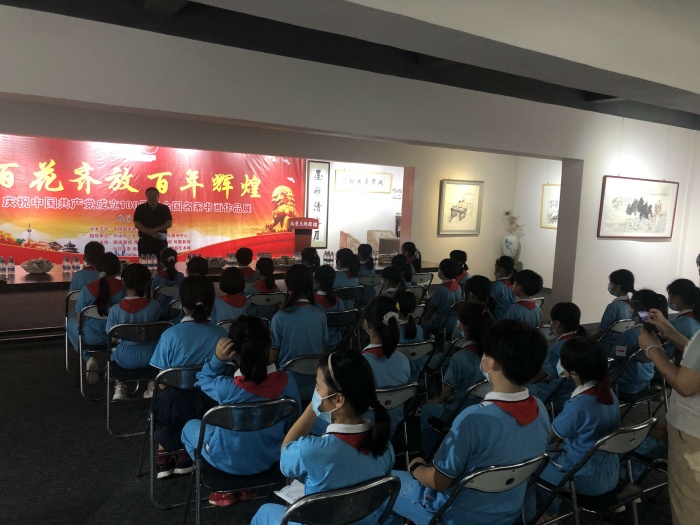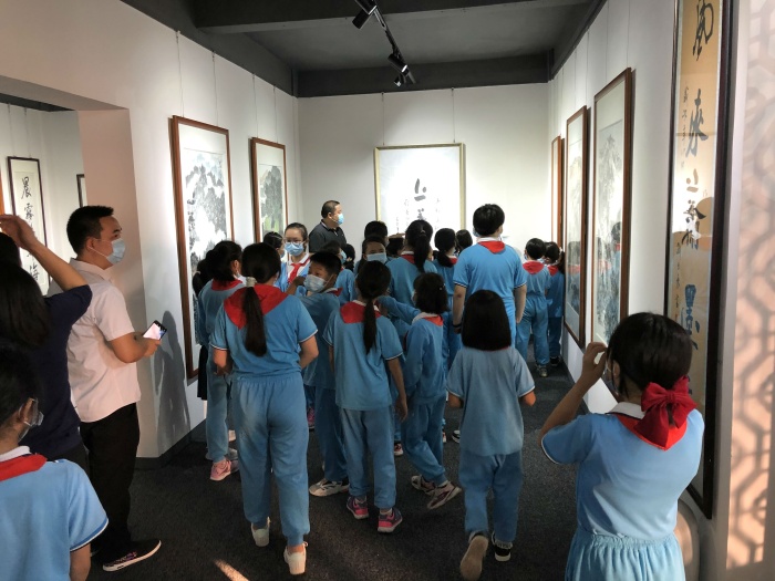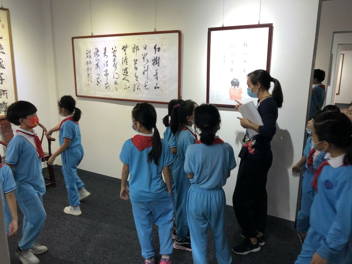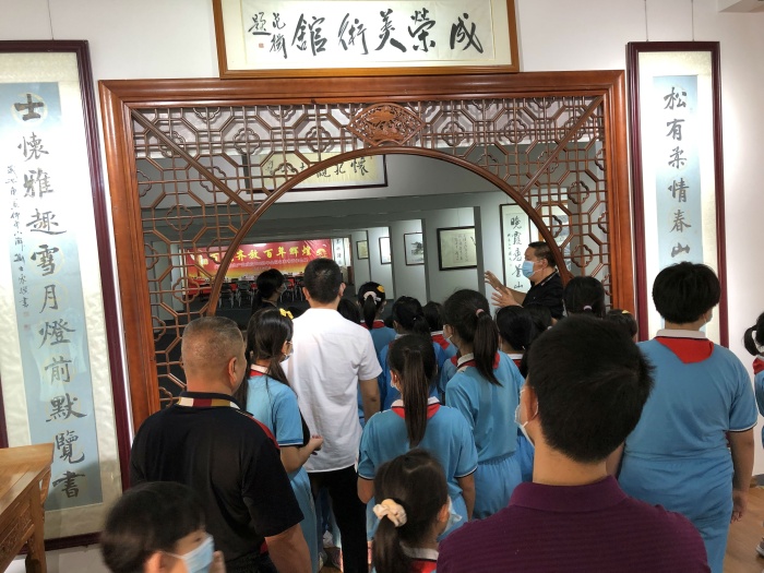 揭牌活動當(dāng)天適逢中山市成榮美術(shù)館《百花齊放 百年輝煌—-慶祝中國共產(chǎn)黨建黨一百周年全國名家書畫作品展》展覽期間,美術(shù)館張成榮館長和載德小學(xué)余烜軍老師耐心地向同學(xué)們講解中國傳統(tǒng)文化之魅力,引導(dǎo)孩子們學(xué)習(xí)中華藝術(shù)的興趣!