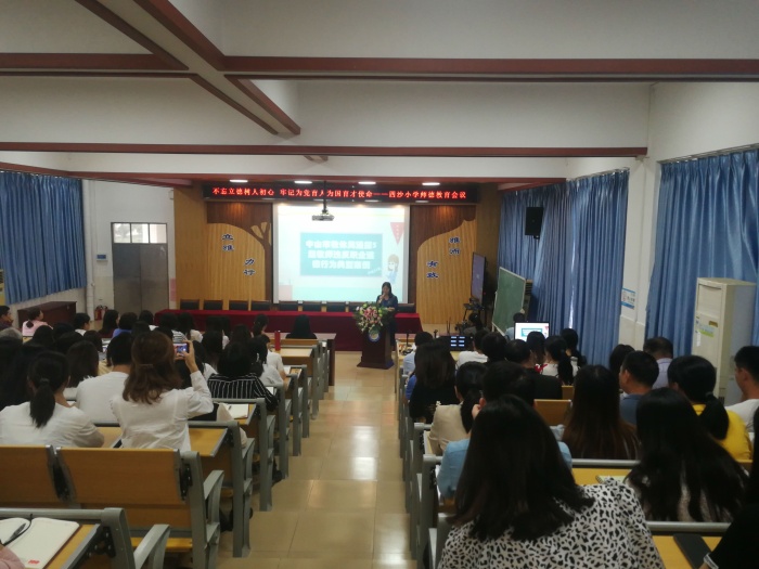 2021年11月3日下午,四沙小學(xué)校長歐慧芳組織全體教師在階梯室開展了“不忘立德樹人初心 牢記為黨育人為國育才使命”主題師德教育。