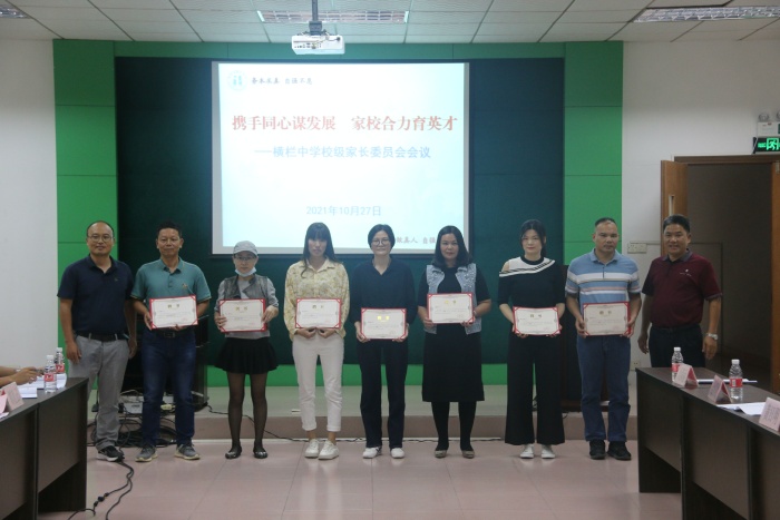 緊接著,會議集體審議通過了新一屆校級家委會成員,由黃浩鋒擔(dān)任校級家委會主任;梁少群擔(dān)任秘書長;楊寶山、黃日明、吳潤明、向芹、梁滿麗、邱喜鵲擔(dān)任副主任。并由新一屆家長委員會主任黃浩鋒先生作了表態(tài)性發(fā)言。同時,學(xué)校也為校級家委會全體成員頒發(fā)了聘書。