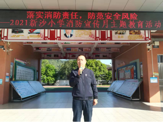 消防安全是校園安全的重要組成部分,為了進一步加強學生的消防安全知識,提高師生的安全意識和自救自護能力,切實保障師生在突發(fā)事件來臨時的生命安全,新沙小學于11月9日上午第一節(jié)課下課后舉行了消防安全疏散演練活動