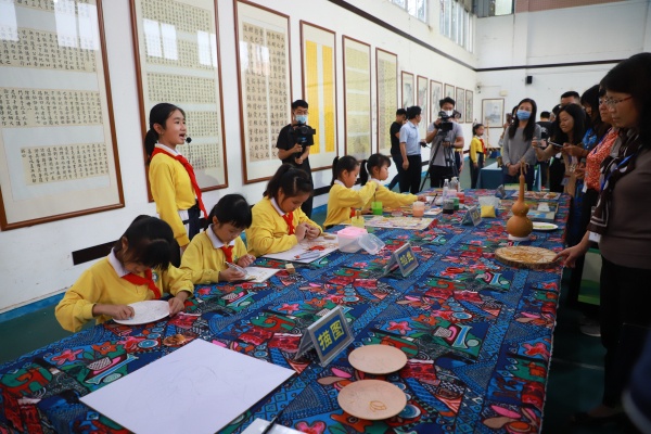 在小導(dǎo)游的帶領(lǐng)下,考察團(tuán)首先來(lái)到民和小學(xué)體藝館,參觀景泰藍(lán)書畫作品。近年,民和小學(xué)提出了“高質(zhì)量發(fā)展”的奮斗目標(biāo),特別是在落實(shí)“雙減”政策中,學(xué)校為學(xué)生提供了扎實(shí)而豐富的課后服務(wù)課程。隨后,考察團(tuán)駐足觀看了師生的活力跑操,并對(duì)民和師生朝氣蓬勃、奮發(fā)向上的精神面貌給予了充分肯定。