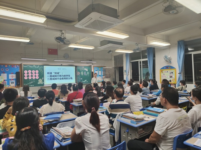 老師們又從學(xué)生的習(xí)慣養(yǎng)成方面,指導(dǎo)家長在“雙減”政策背景下,如何創(chuàng)造學(xué)生健康全面成長的有利環(huán)境。“雙減”是一個(gè)培養(yǎng)孩子自主管理能力的好時(shí)機(jī)。家長朋友們要引導(dǎo)孩子合理安排學(xué)習(xí)計(jì)劃,養(yǎng)成自主學(xué)習(xí)的良好學(xué)習(xí)習(xí)慣,注重挖掘和培養(yǎng)孩子的興趣和特長。引導(dǎo)孩子正確處理好學(xué)習(xí)、運(yùn)動(dòng)和娛樂間的關(guān)系,勞逸結(jié)合,保證睡眠時(shí)間和質(zhì)量,保持有規(guī)律的生活節(jié)奏,促進(jìn)身心健康。會(huì)后,班主任統(tǒng)一做好課室的消毒工作,確保學(xué)生的回校安全。