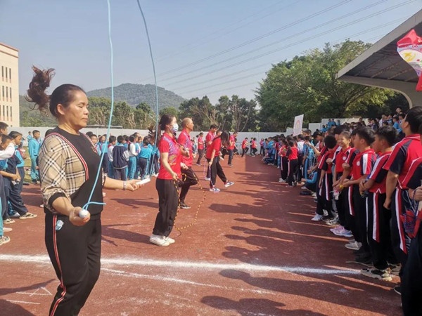 運(yùn)動(dòng)員們精神抖擻,斗志昂揚(yáng),步伐矯健,拉拉隊(duì)用醒目的班旗、響亮的加油吶喊,展現(xiàn)了健康向上、團(tuán)結(jié)進(jìn)取、奮勇拼搏的精神風(fēng)貌。在一天的運(yùn)動(dòng)會(huì)中,師生熱情高漲,意氣風(fēng)發(fā),賽場內(nèi)外洋溢著團(tuán)結(jié)拼搏、重在參與,健康快樂的體育精神。奮進(jìn)的旋律在跳繩和仰臥起坐中奏響,在接力賽中,距離攔不住奪冠的腳步;孩子們飛馳的身影綻放著青春的活力;蓄勢、起跑、跳躍,孩子們在跳遠(yuǎn)中展現(xiàn)風(fēng)采。