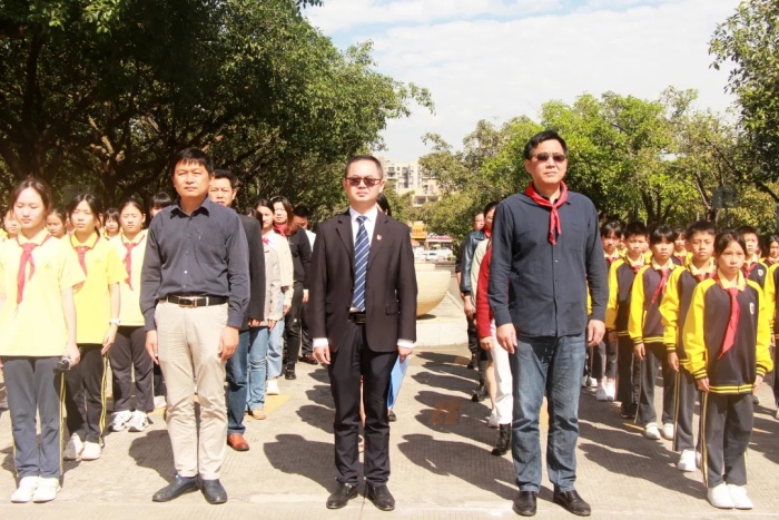 11月12日11點(diǎn)12分,中山市三鑫學(xué)校校長(zhǎng)黃建軍、校監(jiān)楊要武、初中部校長(zhǎng)杜業(yè)富、德育副校長(zhǎng)江叔良等管理人員及學(xué)生代表,在孫中山先生銅像前隆重舉行紀(jì)念孫中山先生誕辰155周年活動(dòng),緬懷他為民族獨(dú)立、社會(huì)進(jìn)步、人民幸福建立的不朽功勛,弘揚(yáng)他的革命精神和崇高品德,以此激勵(lì)全校師生為實(shí)現(xiàn)中華民族偉大復(fù)興而團(tuán)結(jié)奮斗。