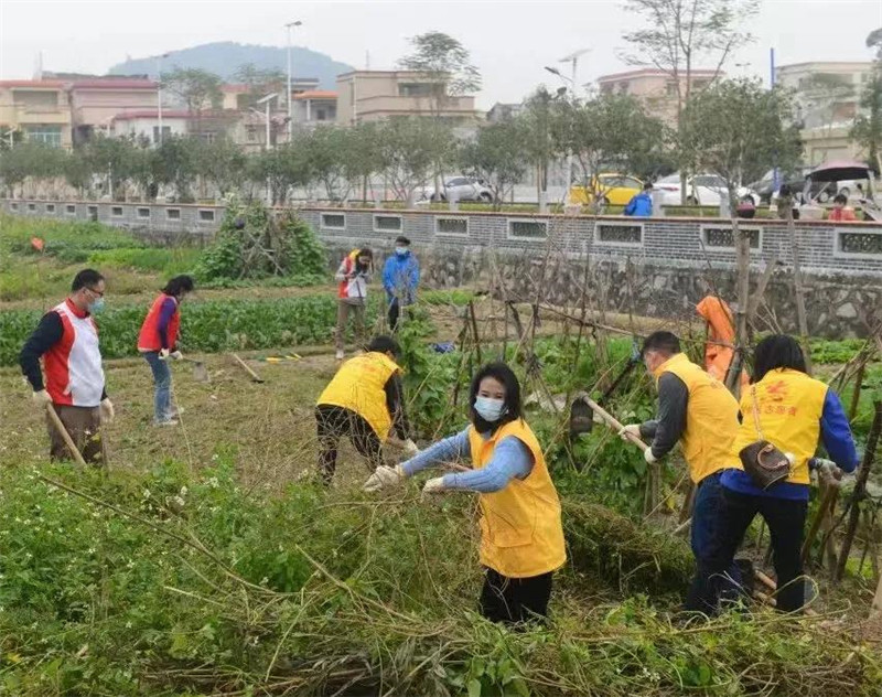 隨后,親子家庭們分成兩個組開展環(huán)境衛(wèi)生志愿服務(wù),齊心協(xié)力將親子農(nóng)場及周邊的雜草和垃圾進行清理,并開墾一塊空地,種植上香菜等農(nóng)作物。