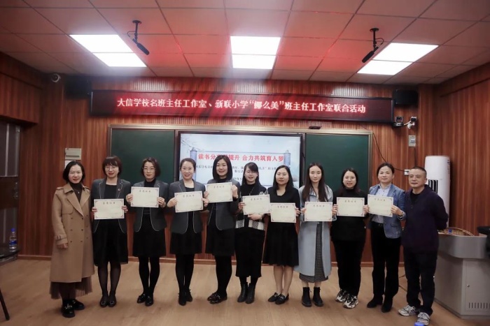活動最后,由潘志堅校長和新聯(lián)小學德育副主任劉桂英為本次參與活動的班主任頒發(fā)證書,并合影留念。