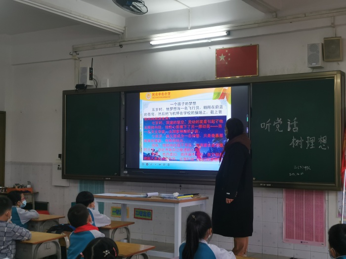 下午的班隊課,各班中隊輔導(dǎo)員的精心準備,主題教育開展非常順利。活動當中,首先各班中隊輔導(dǎo)員圍繞“什么是理想?”讓隊員們了解理想的意義和重要性。接著,引導(dǎo)學生發(fā)揮想象“理想像什么?”讓學生暢所欲言。緊接著,通過用《一個孩子的夢想》的故事和大量數(shù)據(jù)的分析,讓隊員們討論:如何實現(xiàn)自己的理想?將來為了實現(xiàn)理想做怎樣的準備?現(xiàn)實生活哪些事情最容易影響我們的意志,原因是什么?該如何處理?讓隊員們在討論中明白樹立理想的重要性,激發(fā)了全體隊員樹立理想、刻苦學習、報效祖國的信心和熱情。最后,通過欣賞古人理想的故事和朗讀關(guān)于理想的名人名言等活動形式,懂得實現(xiàn)理想應(yīng)不懼困難,通過不斷的努力奮斗而實現(xiàn)。