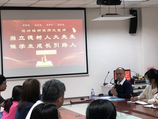 12月15日下午,我校有幸邀請到坦洲鎮(zhèn)宣講團成員、十四村小學麥滿棠主任為我校教師作主題為“當立德樹人大先生 做學生成長引路人”的專題講座。本次講座由王峰主任主持,全體教師聆聽學習。