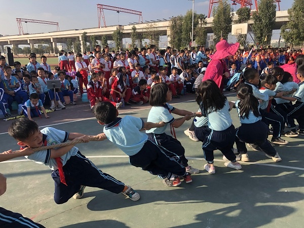 下午的趣味運動比賽豐富多彩,充分考慮到了學生的年齡特點,也將學生的興奮點點燃。低年級有天旋地轉(zhuǎn)射門比賽,中高年級有籃球運球接力;每個年級都有集體跳繩和拔河比賽。歡呼聲、吶喊聲響徹安阜小學上空,所有比賽在拔河比賽的高潮中結(jié)束。